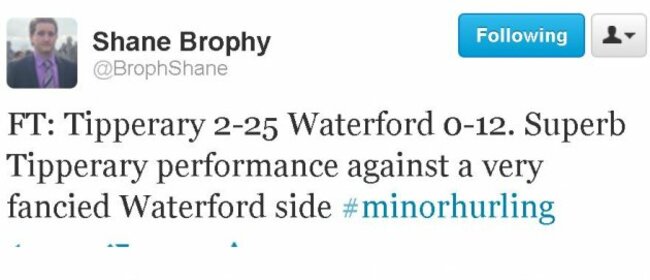 Tipperary 2-25 Waterford 0-12 (FT) – Munster MHC semi-final (Semple Stadium)