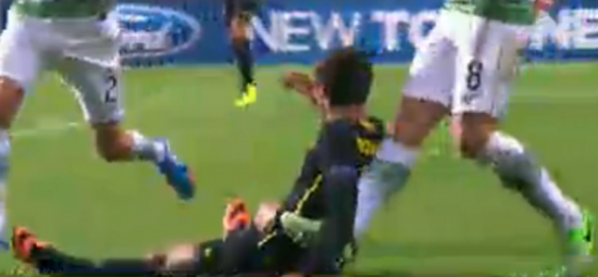 A very, very harsh call against the Hoops midfielder. However, he did let his right boot flick out at Neymar on the floor right in front of the referee.