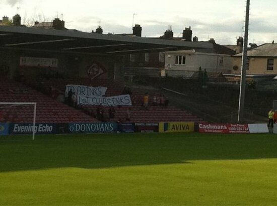 We brought you that baner at Turner’s Cross earlier which alluded to John Delaney. Well Ruaidhi O’Connor from the Indo tweets this from Richmond Park: “Bohs fans unveil a half time banner which reads ‘Irish football’s problems can’t be sung away’”.