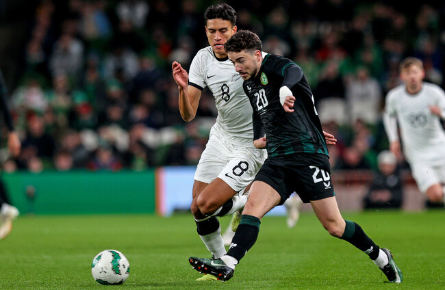 Singh has a chance for New Zealand just before the break but it's Ireland who go in 1-0 up thanks to Adam Idah's goal.