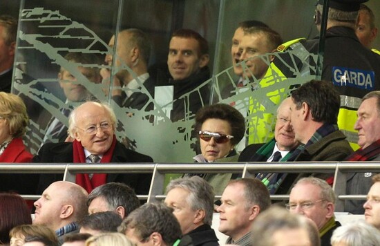 I’d probably be asking for trouble if I asked for your caption suggestions, when there’s visiting royalty involved. But here’s Michael D and Princess Anne in the posh seats below us.