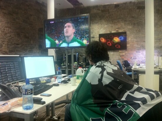 Right, thanks to Niall Kelly here beside me and his bookies account, I’ve backed a 0-0 draw. He’s gone for an Irish with with Glenn Whelan to score, the crazy maniac. You can get the scoreless stalemate at 16-1 on Betfair, FYI.