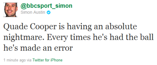 Here’s Simon’s anaylsis of the first half. If you’ve got something that you want to get off your chest, or if you’re simply avoiding Hookey’s half-time musings, send them in. Details on how to get in touch are at the top of the page.