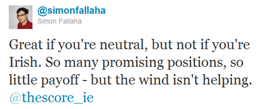 Wind? What wind? He nails it again. Superb kicking by the full-back. Ireland 3-10 Wales
