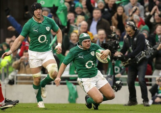The try came when Ryan won a line-out ball, Paul O’Connell clipped off around the corner and when Sexton subsequently played a long pass out to Bowe, he wasn’t going to be stopped in the corner. The place is rocking now as we enter the final furlong.