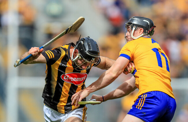 16 mins — Kilkenny 0-8 Clare 0-5: Cathal Malone can’t stop Huw Lawlor, even by fouling him. With advantage being played, Lawlor shrugs off Malone’s tug of his jersey, and booms over a point.