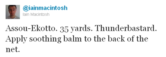 Here’s Iain Macintosh’s description of that second Spurs goal: