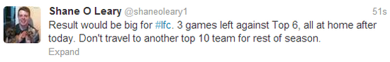 Liverpool, currently seventh, bounced back from FA Cup exit at the hands of Oldham by holding Arsenal to a 2-2 draw at the Emirates earlier this week. The last team these two met back in August it ended in a draw. As the tweet below explains, victory against City would be huge: