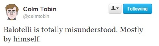 Balotelli, up front, is cussing and stomping around, his blood all angried up.