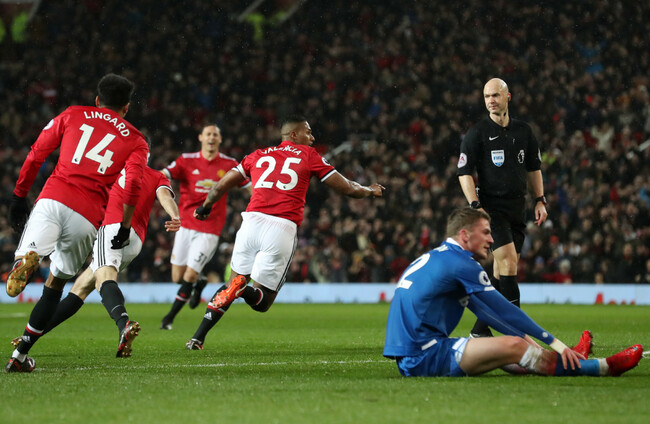 Lukaku gets his names on the scoresheet. Lingard gives it to provider Martial, who pings a pass at the striker. His control is good and the finish leaves Butland helpless.