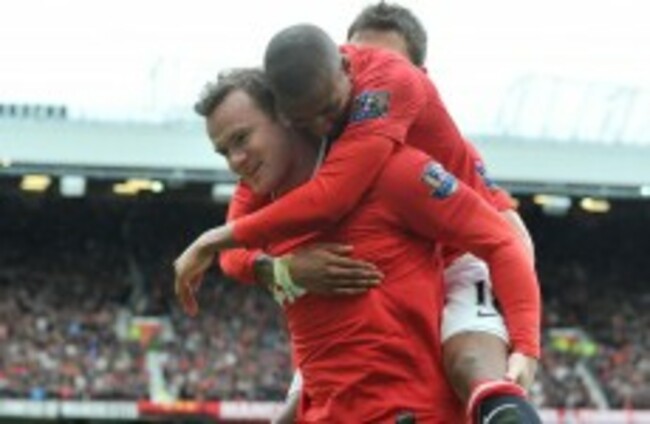 Wayne Rooney celebrates Manchester United's controversial opener PA