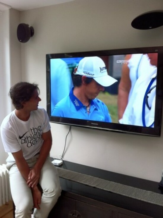 Either Rafa Nadal is looking for a new flat-screen or he’s impressed with McIlroy’s performance too. (via PaulDollery)