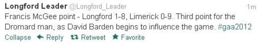 As Tyrone beat Roscommon, Limerick have equalised against Longford! Hang on, no they haven’t! Sean McCormack sends the home crowd into raptures as he fires Longford into the lead again.