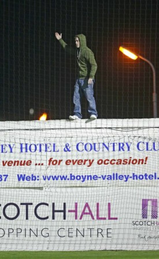 A fan watches Drogheda United play Sligo Rovers from an unusual vantage point (INPHO/Morgan Treacy).