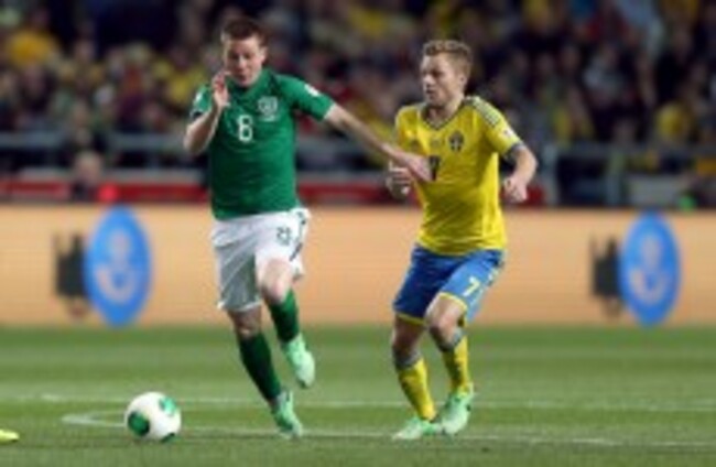 Great run by James McClean down the left, and his cross is unconvincingly cleared by a Swedish outstretched leg.
