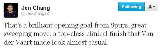 Tottenham 1-0 Swansea. The home side takes the lead and it’s Rafael van der Vaart - a sublime finish from the Dutchman.