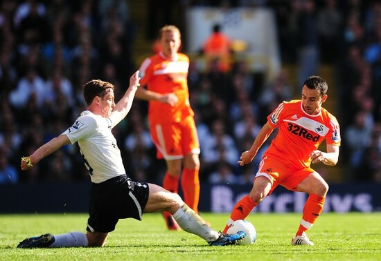 Tottenham 1-1 Swansea. It’s a scruffy one but they all count, apparently. Gylfi Sigurdsson has just scored his sixth goal for Swansea, hitting his shot into the ground and beyond the grasp of Friedel. It was all preceded by some fine work from Wayne Routledge, who held off Benoit Assou-Ekotto.