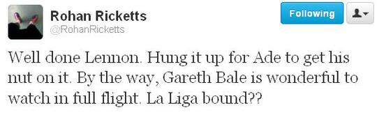 Jake Livermore is coming on for Tottenham. His hair is like Scott Sinclair’s was four weeks ago, at a guess.