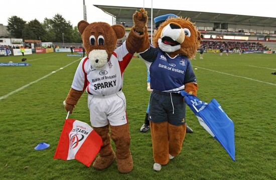(Ulster mascot Sparky with Leinster’s mascot Leo the Lion – INPHO/Morgan Treacy)