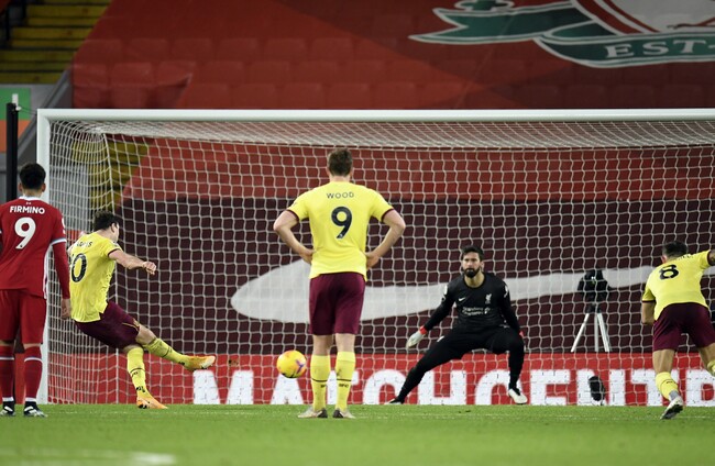 Ashley Barnes’ 83rd-minute penalty — his 100th senior career club goal — inflicted the first league loss on home soil for Jurgen Klopp’s side since Crystal Palace in April 2017, after a run of 68 matches undefeated.