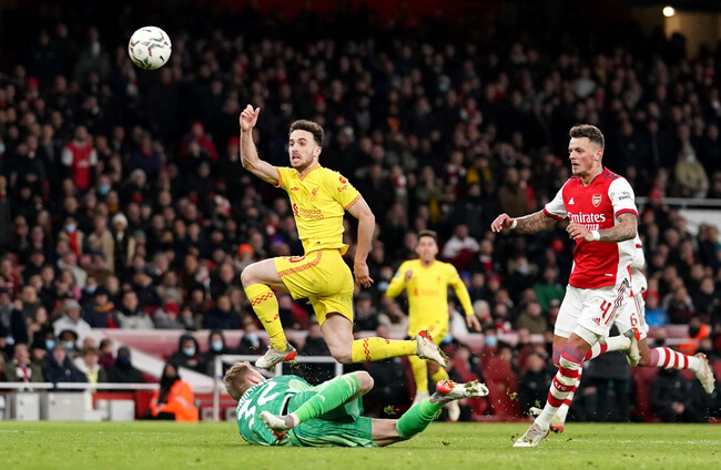DIOGO JOTA FIRED Liverpool into the League Cup final against Chelsea as the Portugal forward’s double sealed a 2-0 win at Arsenal in the semi-final second leg on Thursday.