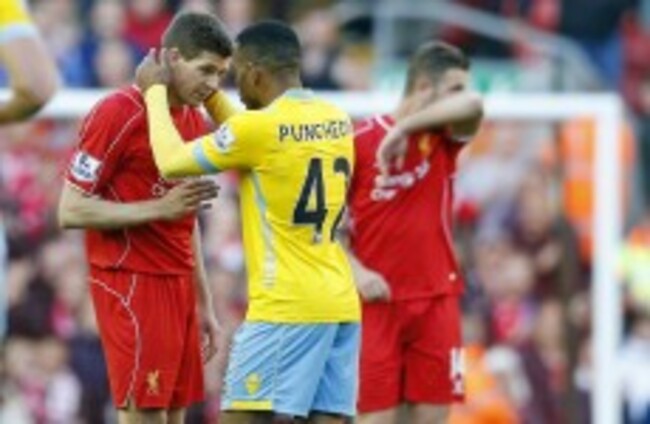 Palace’s fans, meanwhile, seized an opportunity to remind the man of the hour of the only title to have eluded him during his distinguished Anfield career, chanting: “Have you ever seen Gerrard win the league?”