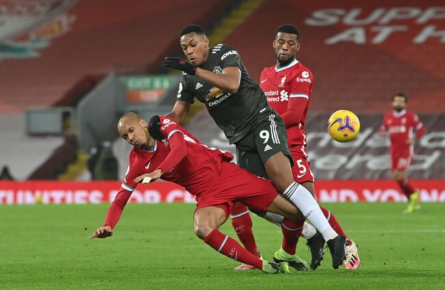 United played well within themselves, content to run holding patterns and wait for a Liverpool mistake, and as a result they did not have their first shot until the 34th minute when Fernandes whipped a free-kick just wide.