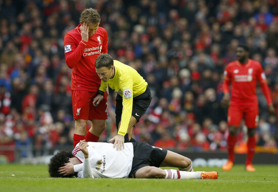 This was the scene after Fellaini’s nasty head clash with Lucas earlier on. Both were fine to continue.