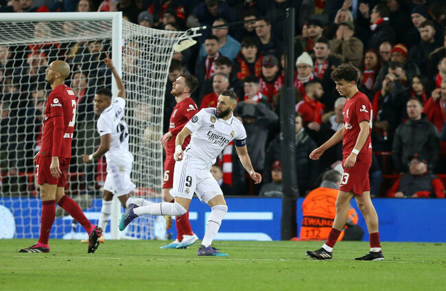 Fortune was also on the side of the Spanish giants for the fourth goal as Benzema’s shot deflected off Joe Gomez to leave Alisson stranded.