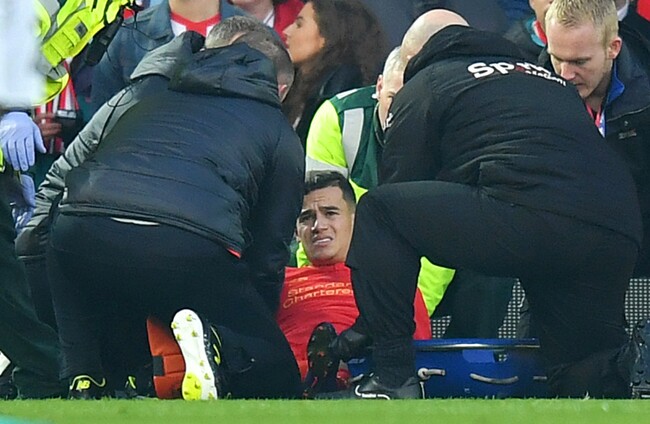 Blow for Liverpool as ankle injury rules Coutinho out for six weeks