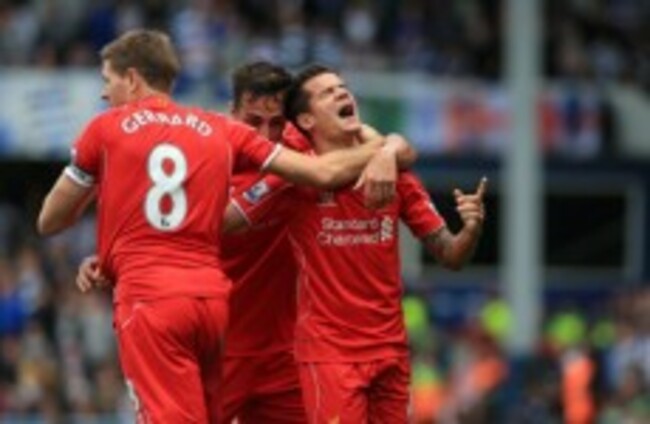 Coutinho’s pass set Sterling away down the left edge of the QPR area and he calmly cut a cross in the direction of Balotelli, only for the ball to hit Caulker and deflect past the wrong-footed McCarthy to spark wild celebrations among Liverpool’s players and travelling supporters.