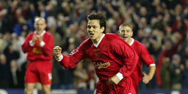 Name this Liverpool player who netted at Anfield against Roma in March 2002?