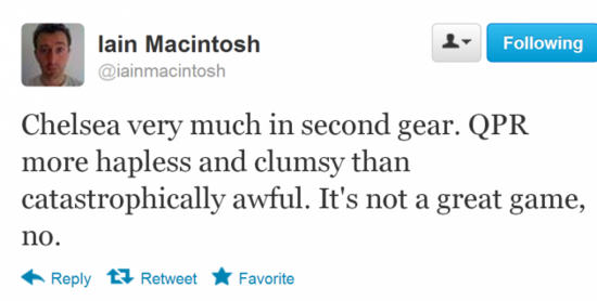 And to make matters worse for Harry Redknapp’s side, Mata has just come on for Chelsea.