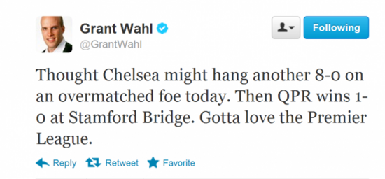 QPR 1-0 Chelsea: Wright-Phillips comes back to haunt his former club, striking it into the corner from the edge of the box (78 mins).