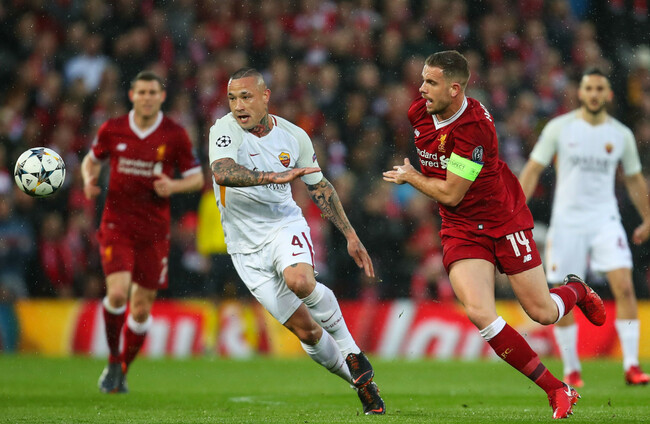 Roma's Radja Nainggolan in action against Liverpool