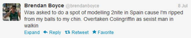 On the Twitter: Check him out @brendanboyce. Here's a tweet from a couple of days ago. Modest lad.