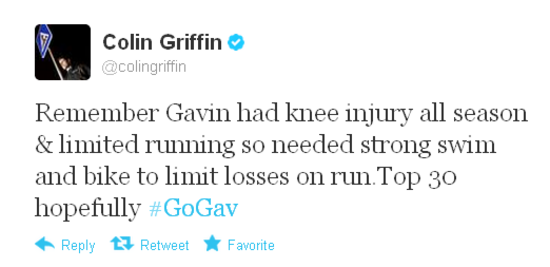Gavin Noble is 11th out of the second transition following a cracking swim and bike. He’s three seconds down as the run begins behind Vincent Luis and the brothers Brownlee.