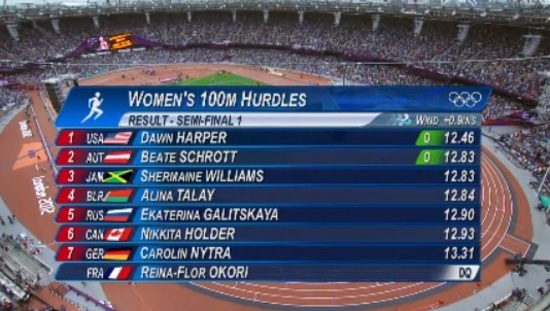FALSE START France’s Reina-Flor Okori jumps the gun and is disqualified in heat 1 of women’s 100m hurldes. As I type, the Olympic champion Dawn Harper storms to an impressive win moments later. Here’s the run down:
