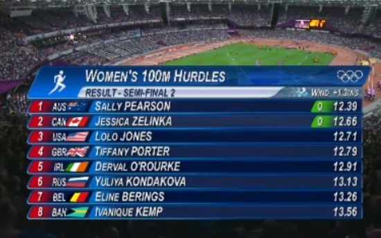 Spoiler alert: if you plan on watching the women’s hurdles after the boxing, look away now, as they say on the BBC news. Sally Pearson is the Olympic champion after a great race. New OR for the Aussie in 12.35, Dawn Harper is second and Kellie Wells takes bronze. Heartache for Lolo again, who’s in fourth.