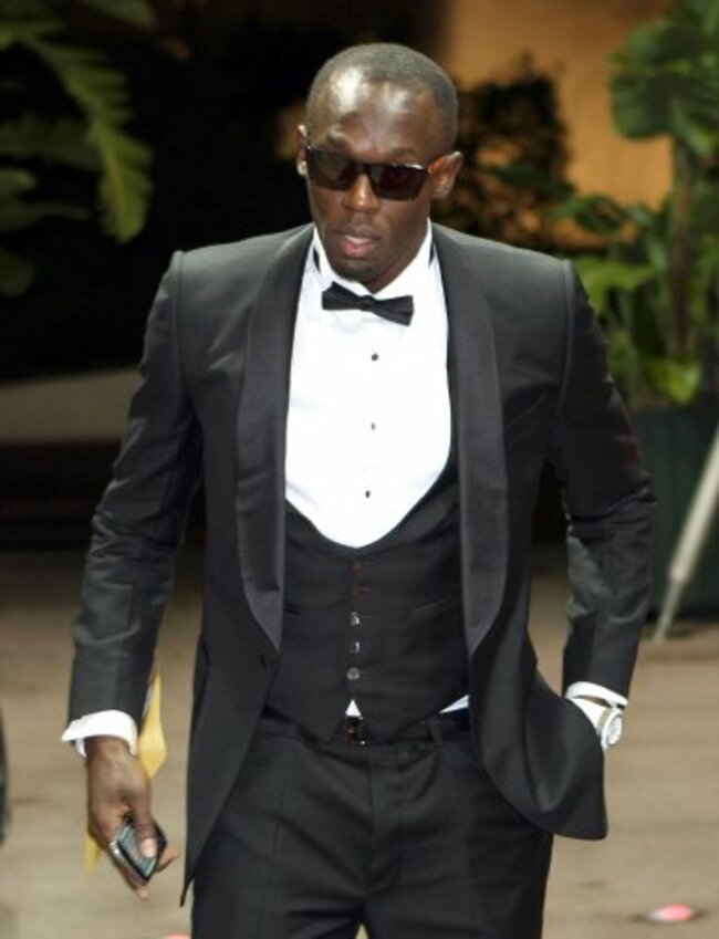 It’s showtime: Jamaican sprinter Usain Bolt. (AP Photo/Claude Paris)