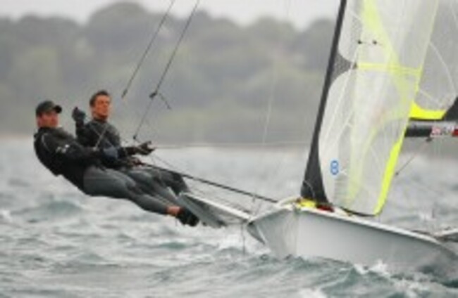 Ryan Seaton and Matt McGovern (left) racing in the 49er class during the London Olympic Games 2012 Test event in Weymouth in August. Chris Ison/PA Wire