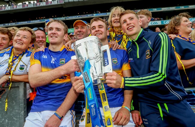 (l-r): John, Brian and Noel McGrath pictured after Tipperary's Munster SHC final victory over Waterford. Ryan Byrne / INPHO
