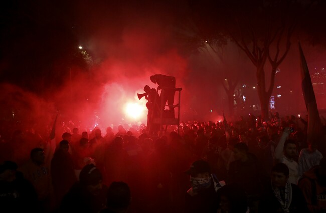 Earlier in the evening around 6,000 fans had gathered at a city beach to perform a short but boisterous ceremonial parade toward their Velodrome stadium to celebrate the 120th anniversary of the creation of the club.