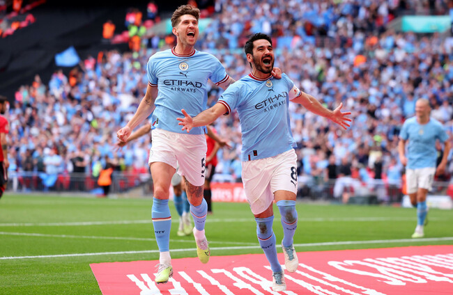 MANCHESTER CITY are one game away from a historic treble after Ilkay Gundogan scored twice to beat Manchester United 2-1 in the FA Cup final on Saturday.