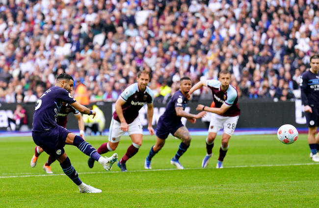 MANCHESTER CITY STAGED a thrilling fightback from two goals down to keep the destiny of the Premier League title in their hands, but Riyad Mahrez’s late penalty miss forced the leaders to settle for a dramatic 2-2 draw at West Ham on Sunday.