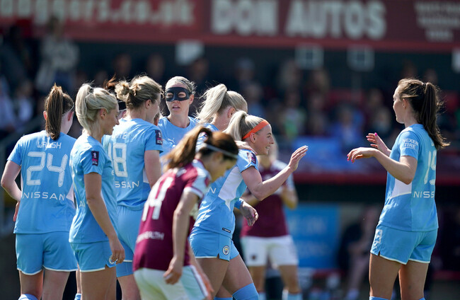 ENGLAND INTERNATIONAL LAUREN Hemp scored twice as Manchester City brushed aside West Ham to book their place in the Vitality Women’s FA Cup final.
