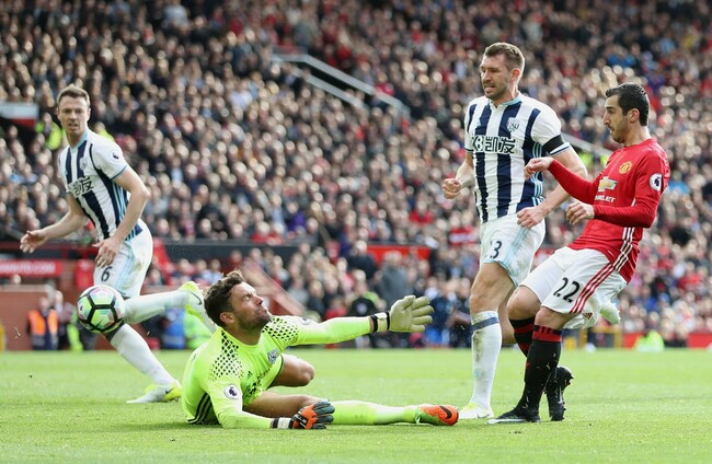 A rare Albion error, from a misplaced pass from Gareth McAuley, let in Mkhitaryan but his attempt to chip over Foster lacked power and the keeper was able to reach out and save.
