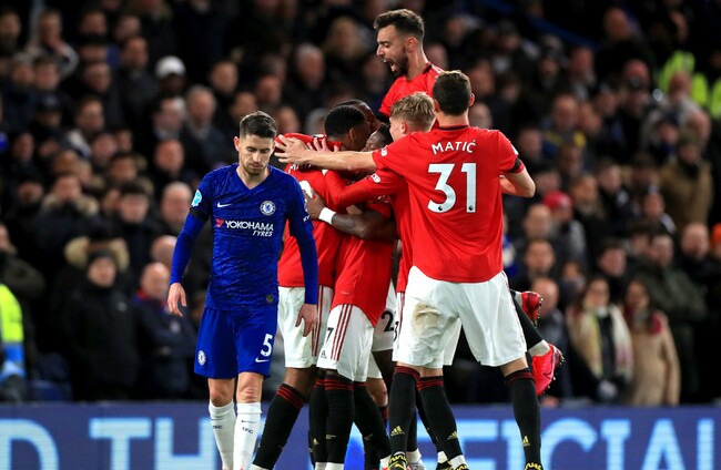 MANCHESTER UNITED MOVED to within three points of fourth-placed Chelsea with a smash and grab 2-0 win at Stamford Bridge thanks to goals from Anthony Martial and Harry Maguire on Monday.