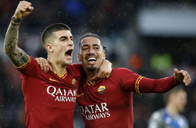 Smalling, on loan from Manchester United, headed in the first from a corner in the 48th minute at the Stadio Olimpico.