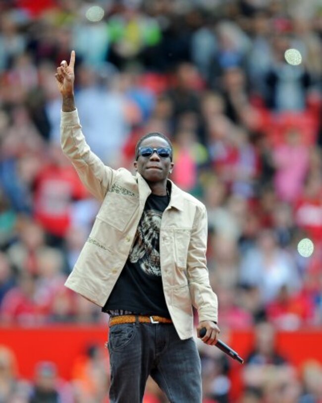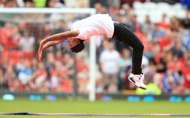 Ashton from JLS — didn’t they break up? — does a backflip as part of the pre-match entertainment.